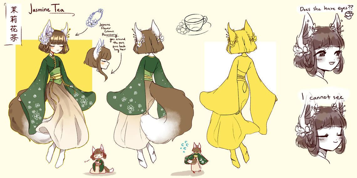 Simple reference sheets will include two clean fullbody illustrations (front and back). Additional details, such as character portraits, sideviews, accessories, props, color palettes, etc., can be specified upon request or added later at an additional cost. All text will be handwritten.